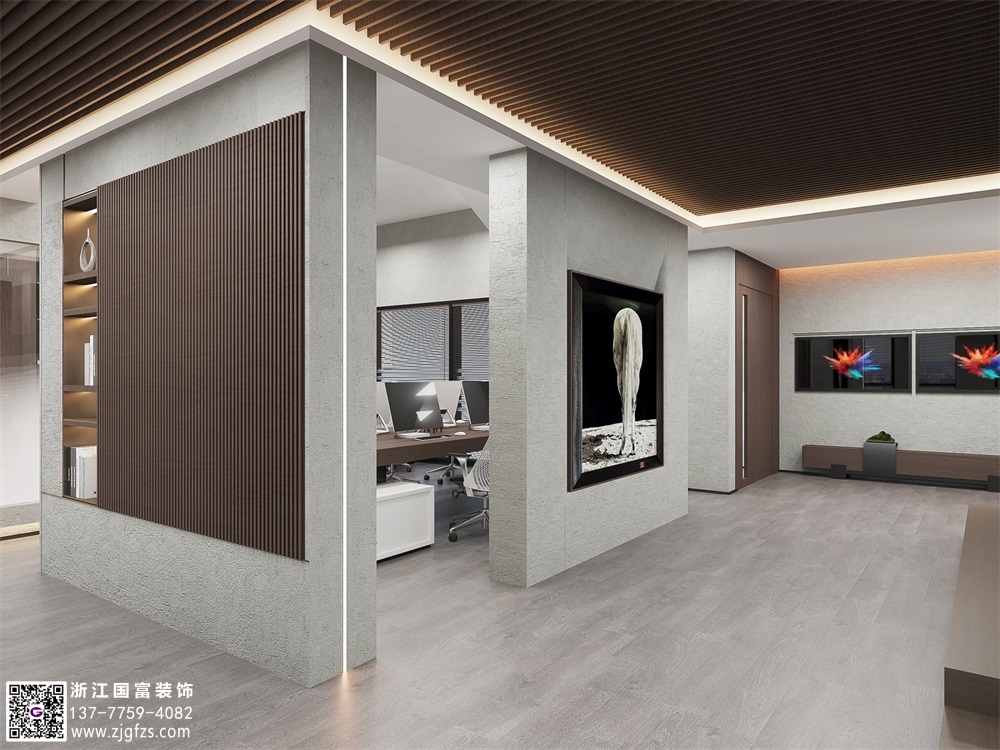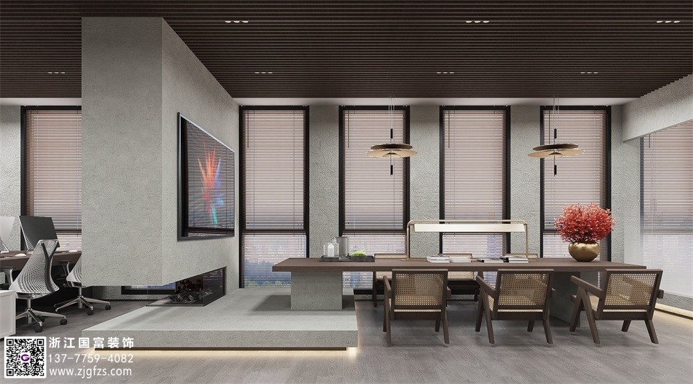 水泥極簡風辦公室裝修設計效果圖